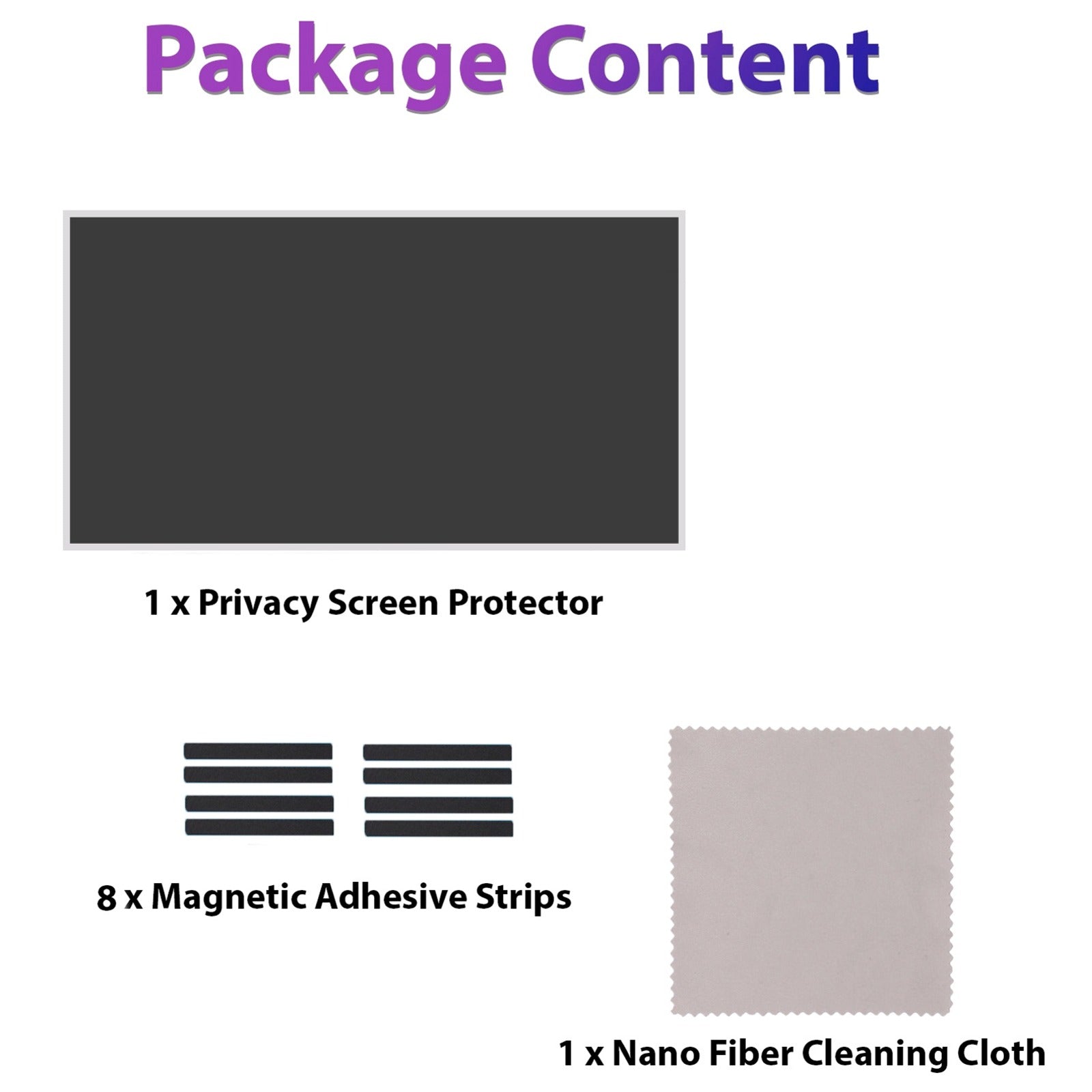 | Package Includes | 1 × Privacy Screen Protector, 8 × Magnetic Adhesive Strips, 1 × Nano Fiber Cleaning Cloth |