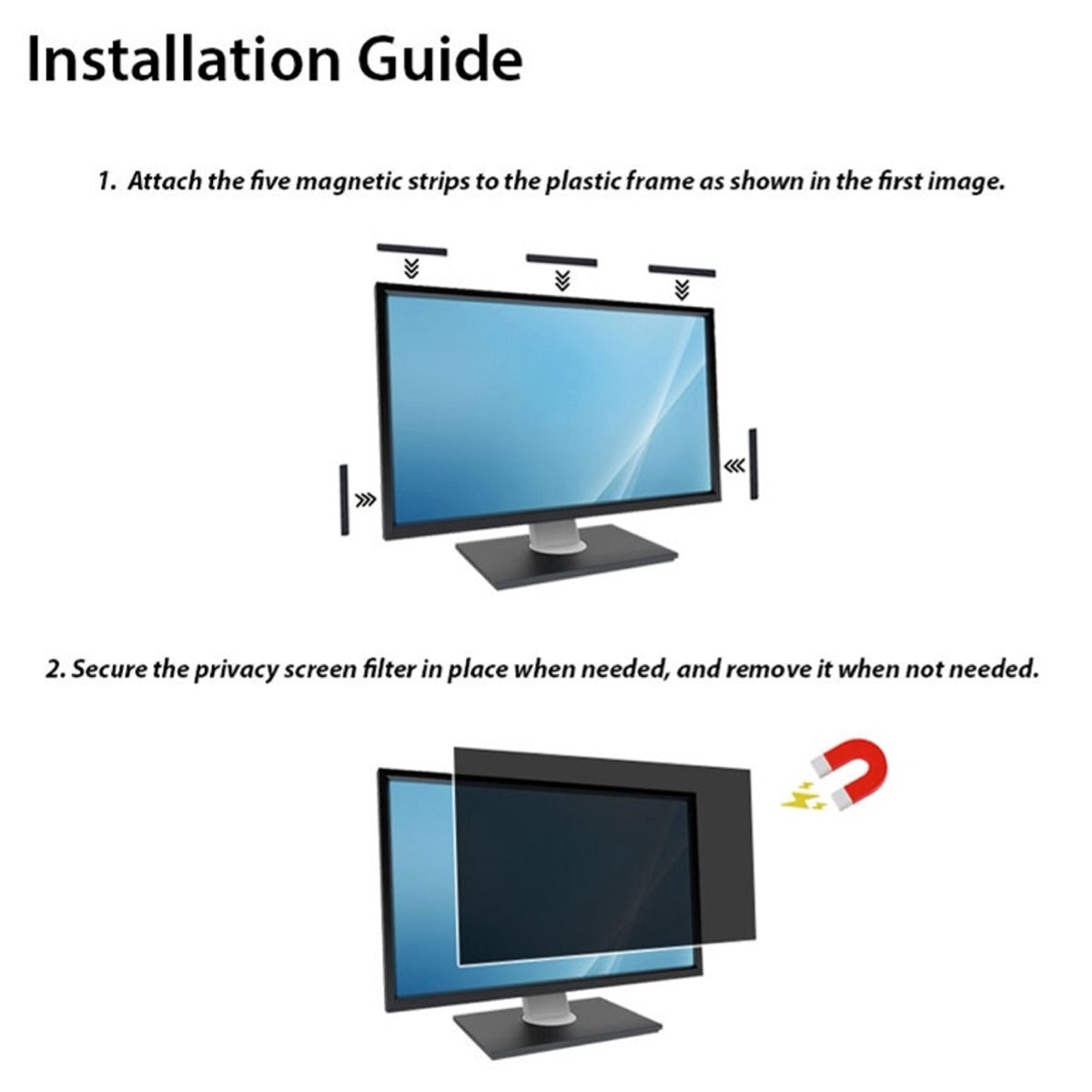 | Installation Guide | Attach magnetic strips to screen edges, align filter, and snap on |