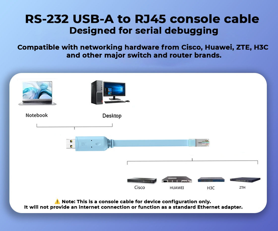 | Compatibility | Compatible with Cisco, Huawei, H3C, ZTE and other RJ45 console-port |
