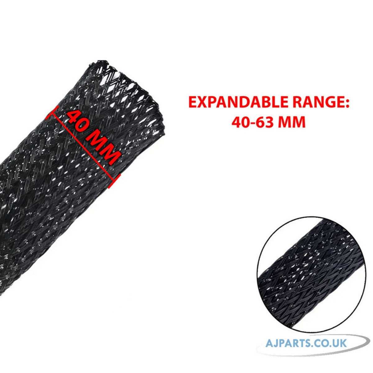 40 mm Black Expandable Braided Sleeve - 25M Reel