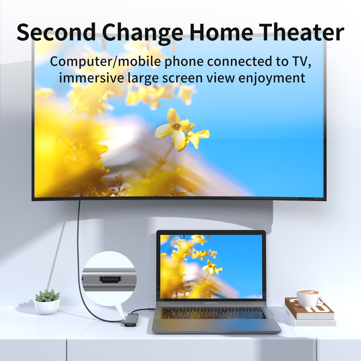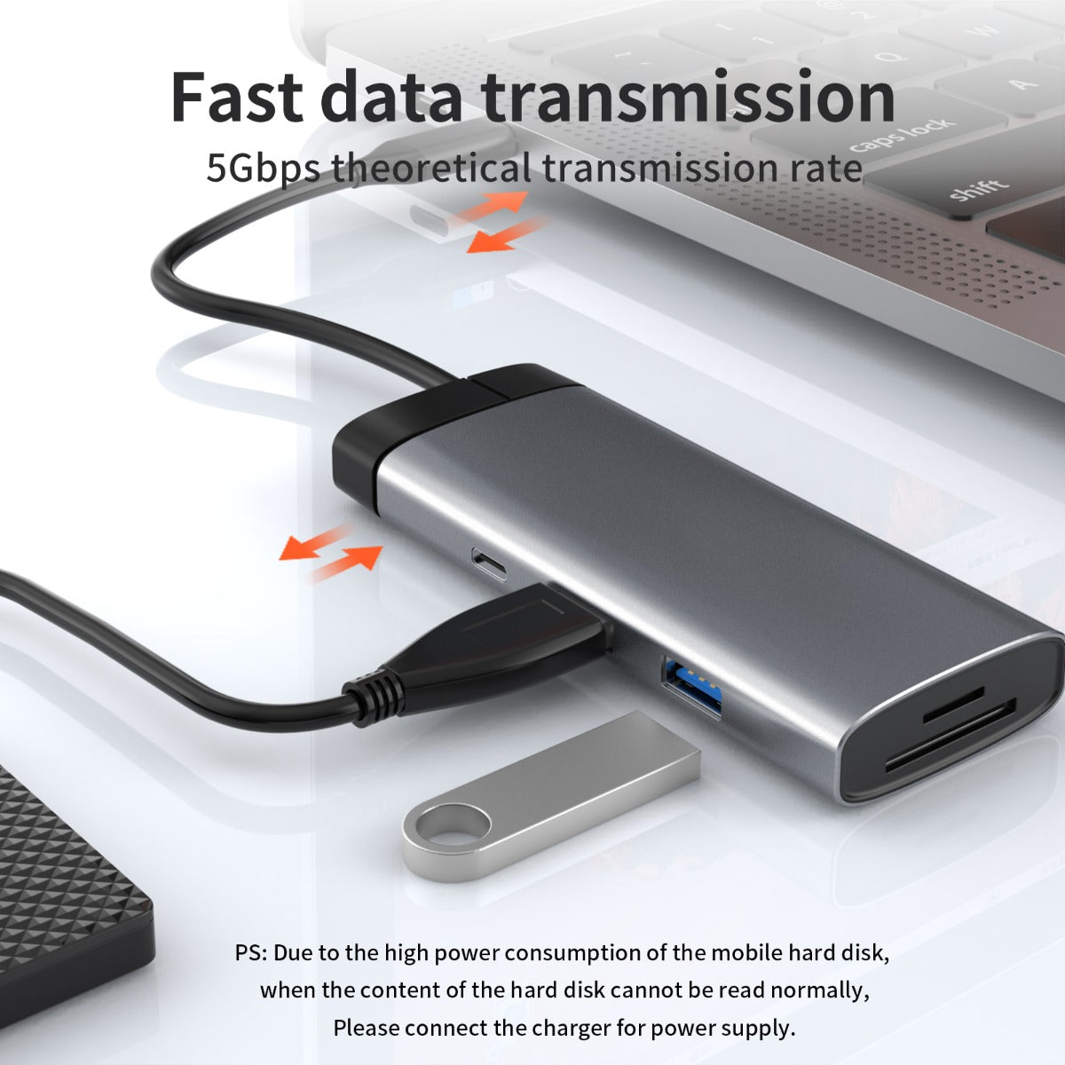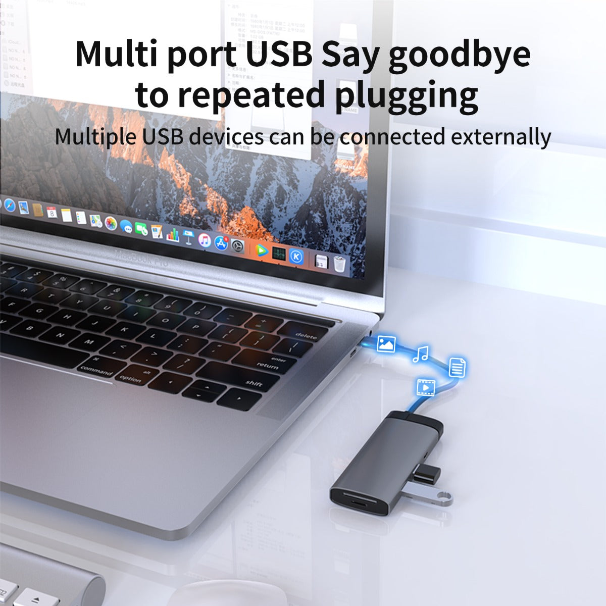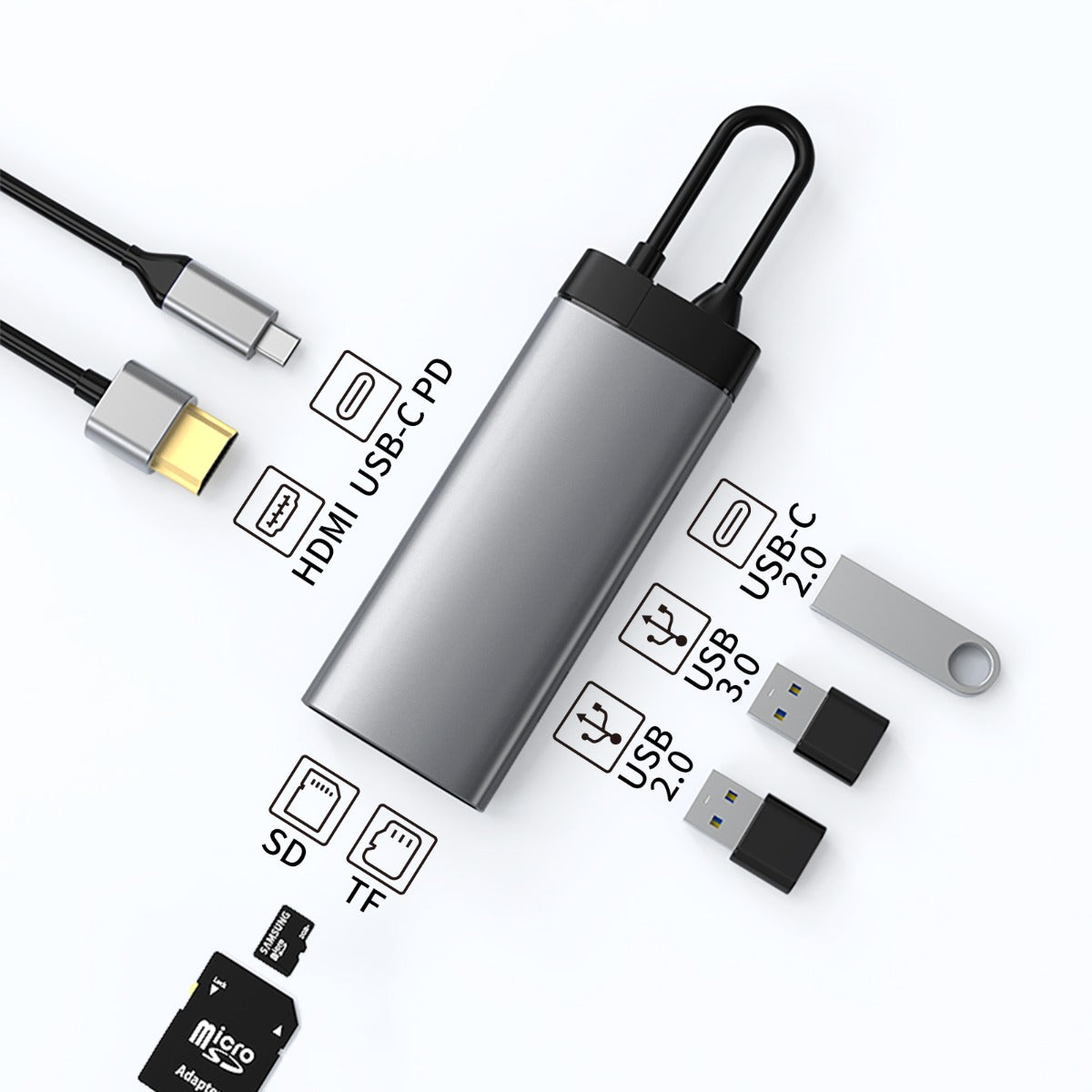7 In 1 Grey USB-C Hub For 1 x USB-C PD / 1 x 4K HDMI / 1 x USB 2.0 / 1 x USB 3.0 / 1 x USB-C Data 2.0 / 1 x SD / 1 x TF