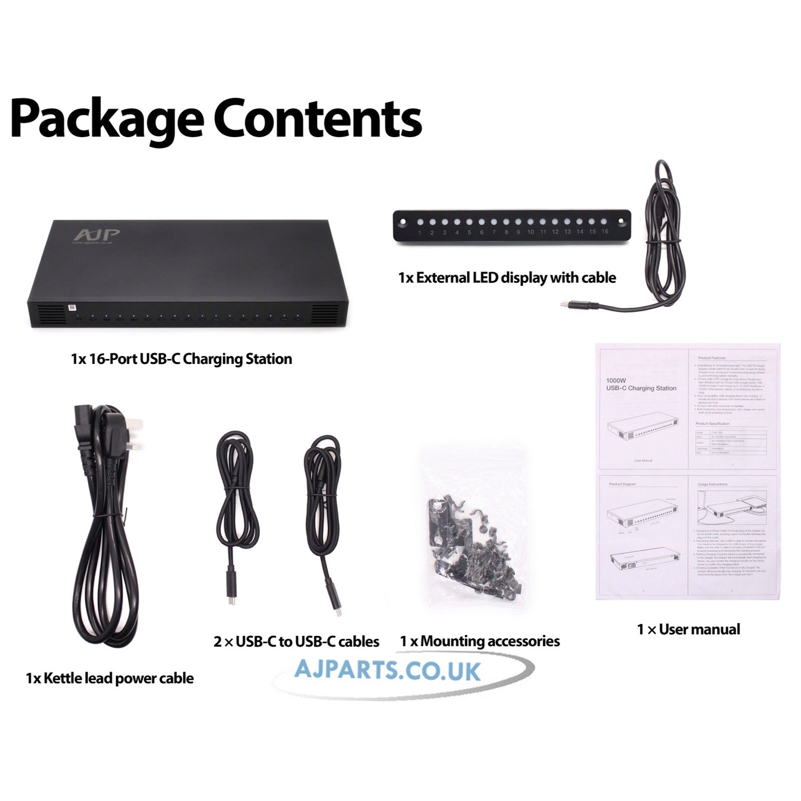 AJP 1000W USB-C Charging Station 16 in 1 for Laptops, Tablets, Phones