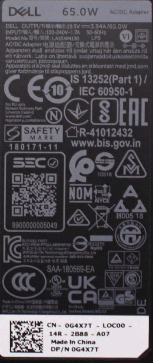 Dell 19.5V 3.34A 65W AC Power Supply 7.4mm x 5.0mm Slim Laptop Genuine Adapter