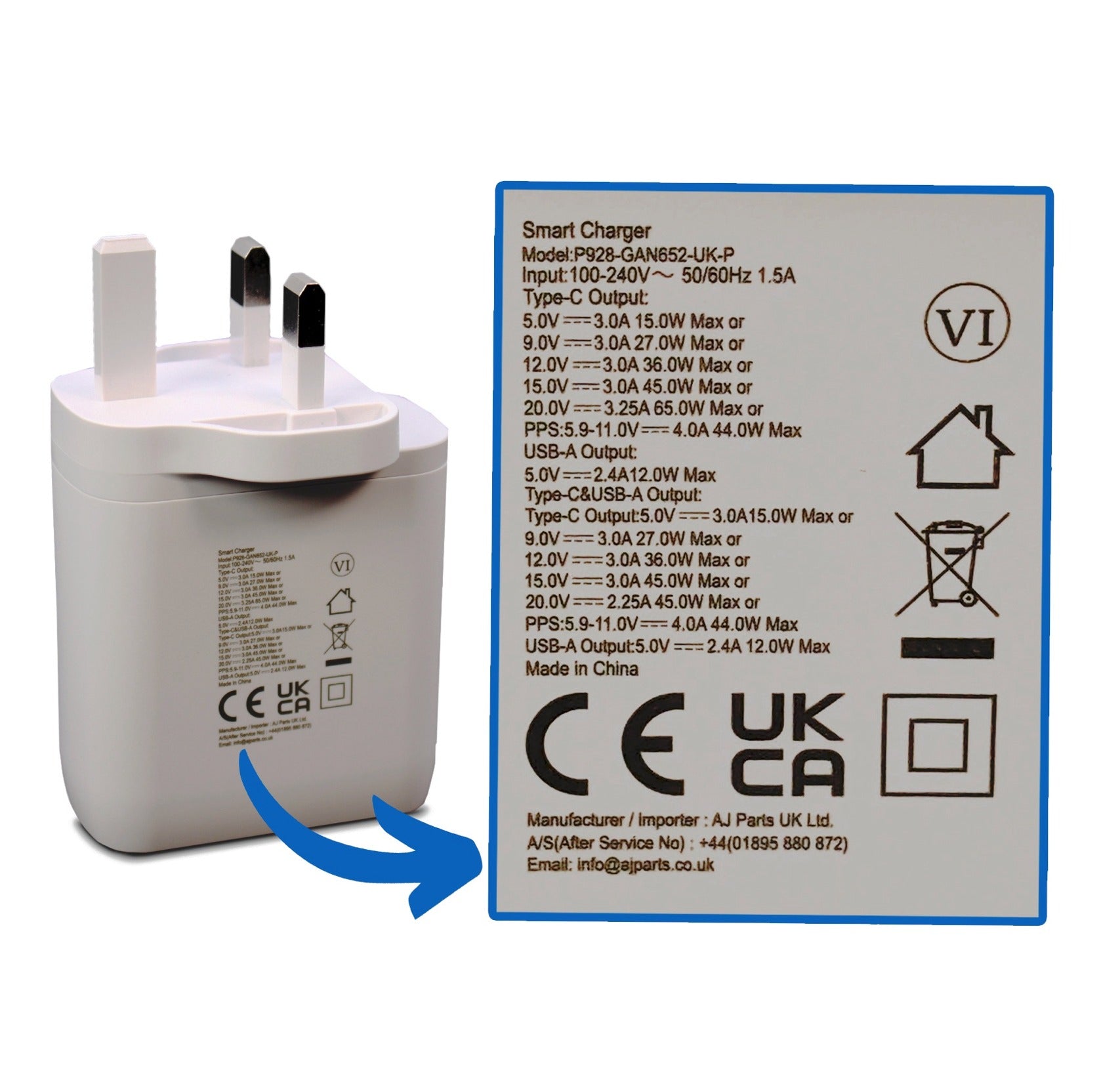 HP Elite Dragonfly G2 (3C8E3EA) 65W Dual Port USB-C & USB-A White Wall Plug AJP Replacement Charger