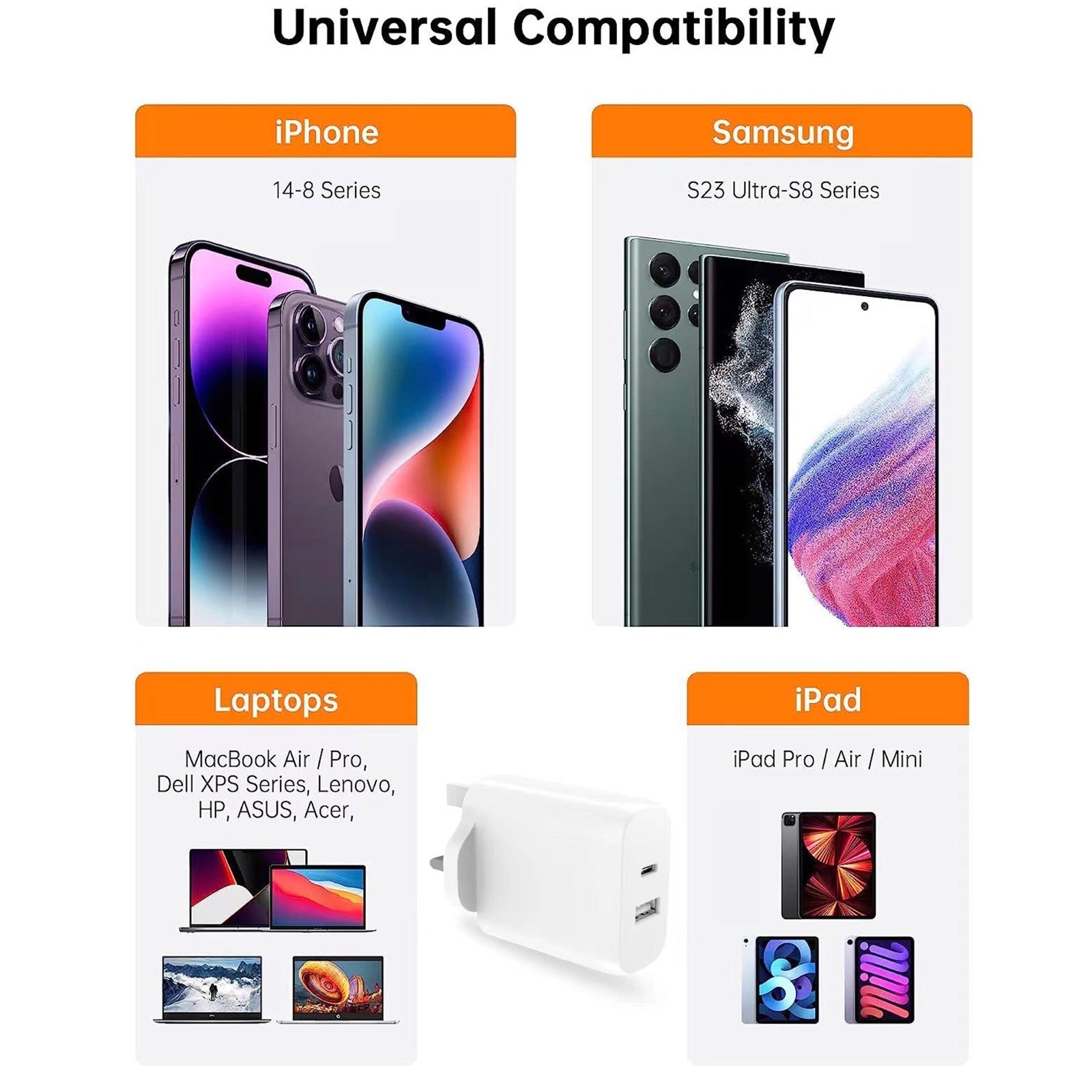 HP Envy x360 14-fa0011na 65W Dual Port USB-C & USB-A White Wall Plug AJP Replacement Charger