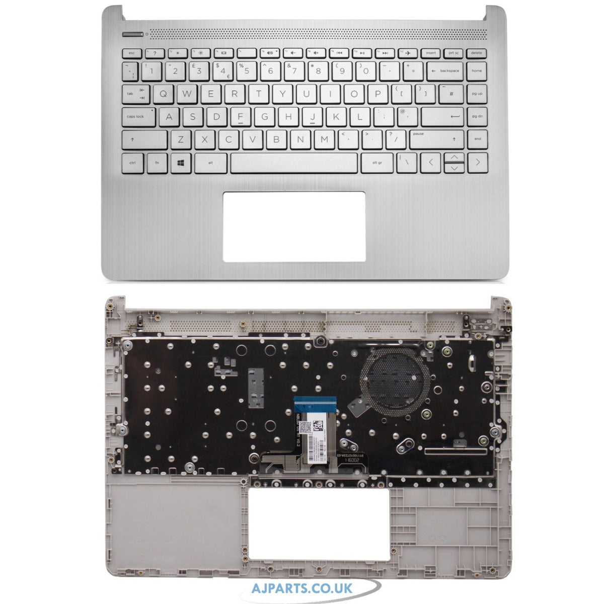For HP 14S-FQ0014NA Compatible Laptop Palmrest UK Keyboard Silver Without Fingerprint