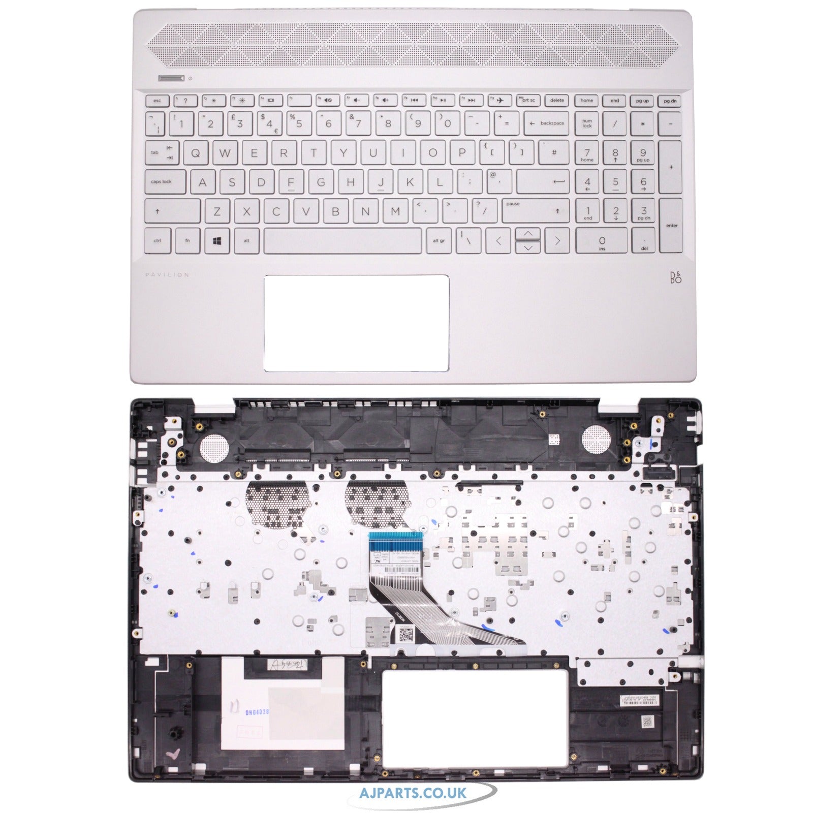For HP Pavilion 15-CW1500SA Silver Compatible Palmrest Cover UK Keyboard