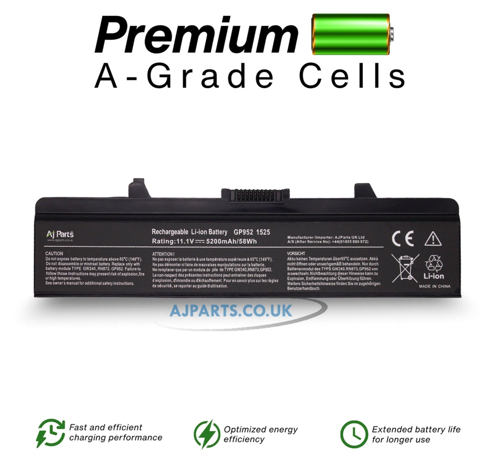 Dell Inspiron 1525 11.1V 5200mAh 58Wh 6-Cell (1525-4-3S2P) Replacement AJP Laptop Battery