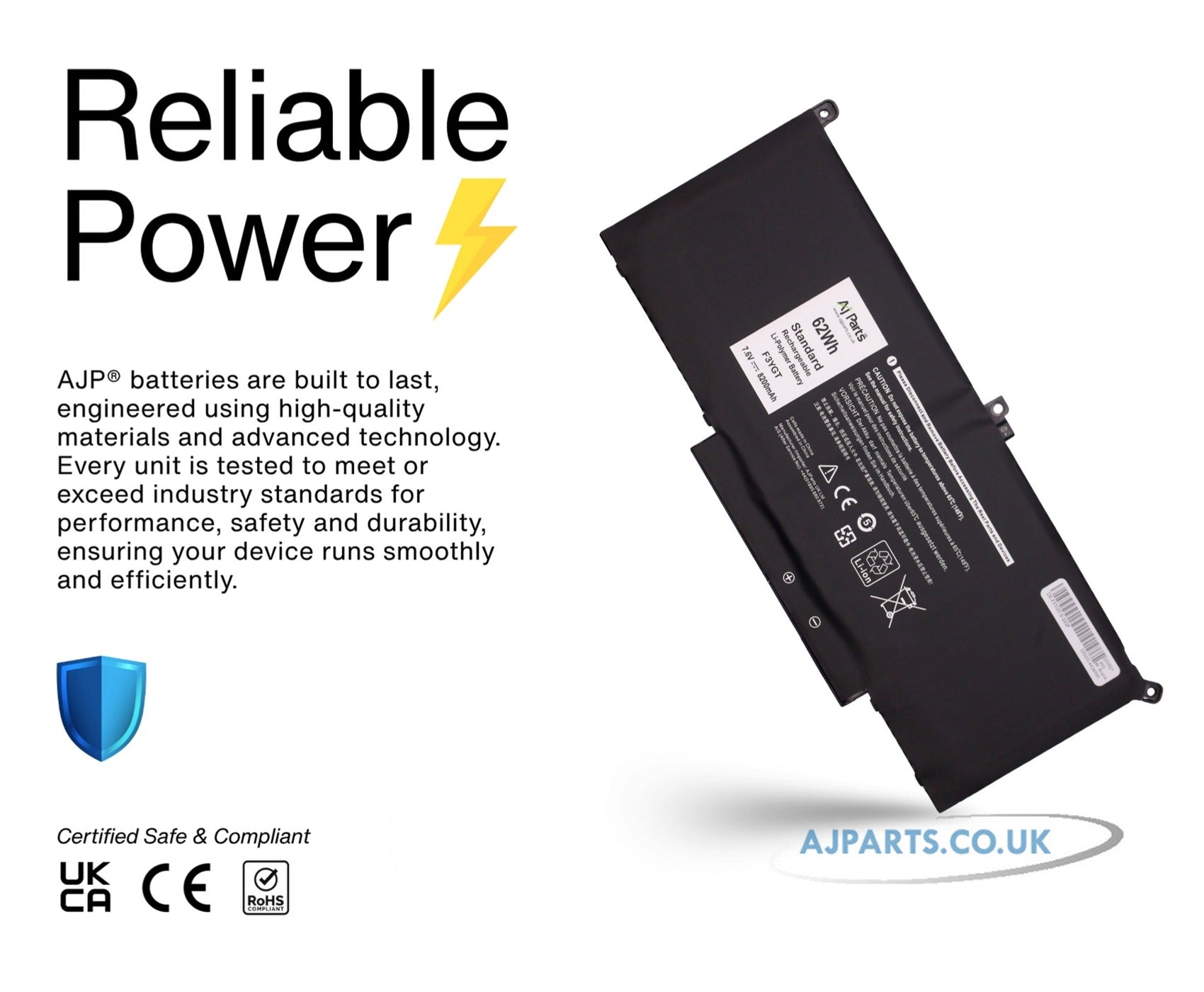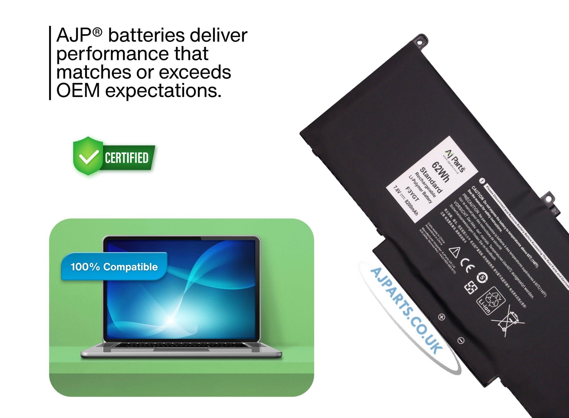 Dell Latitude F3YGT, F3YGT-S-2S2P 7.6V 8200mAh 62Wh 4-Cell Replacement AJP Laptop Battery