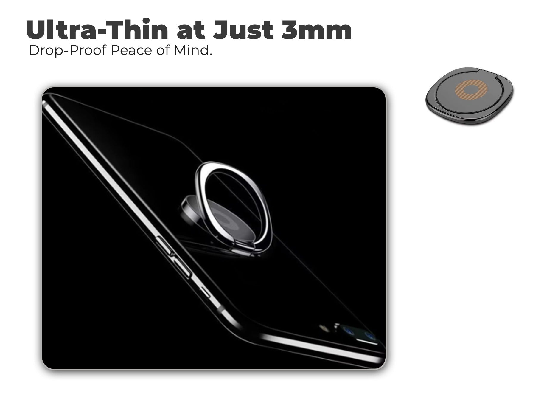 SecureGrip Ultra-Slim 360° Rotating Phone Ring Holder Anti-Drop Finger Grip & Kickstand for All Smartphones (Grey)