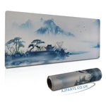 XL Gaming Mouse Pad Desk Mat – Chinese Mountain & River Landscape Print with Stitched Edges