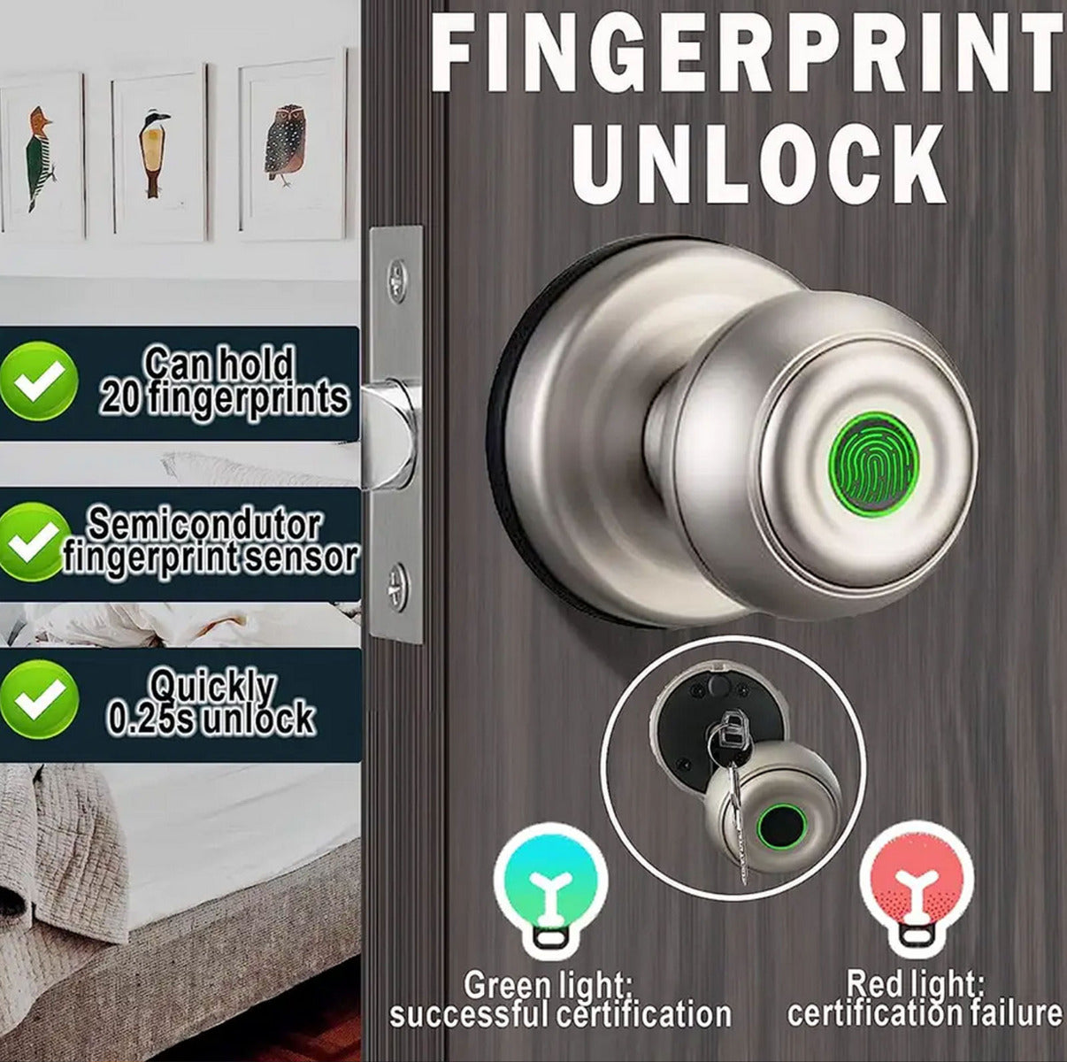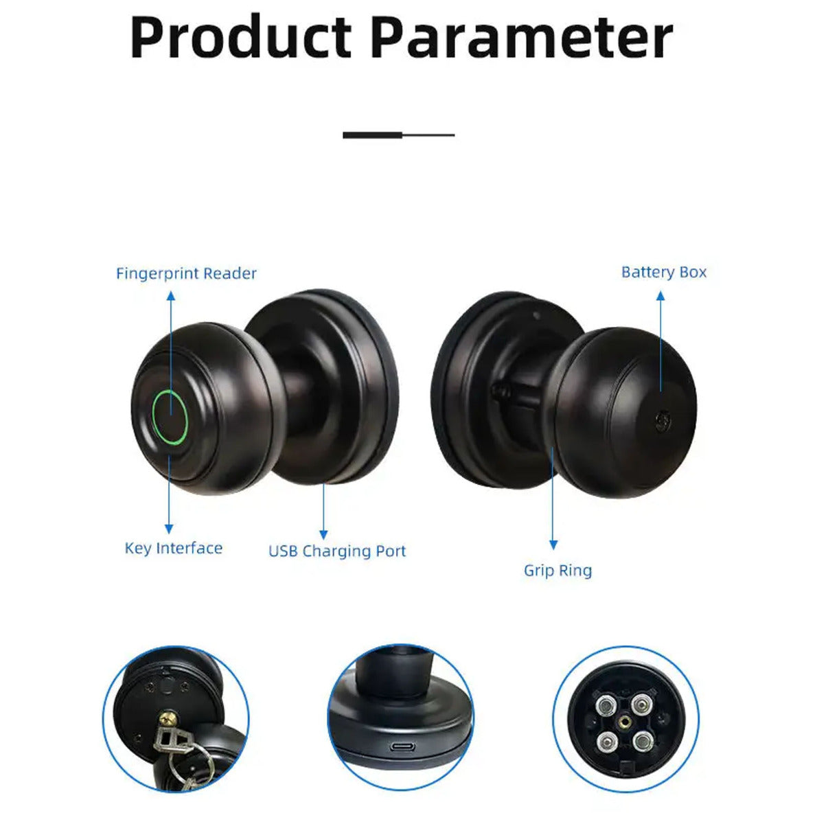 Office Room use Smart App Fingerprint Mechanical Key Unlock Smart Knob Door Lock Keyless