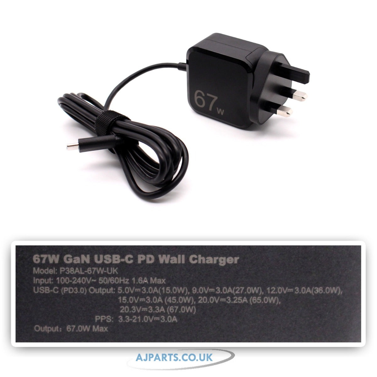 67W USB-C GaN PD Black AJP Replacement Wall Plug Adapter Charger