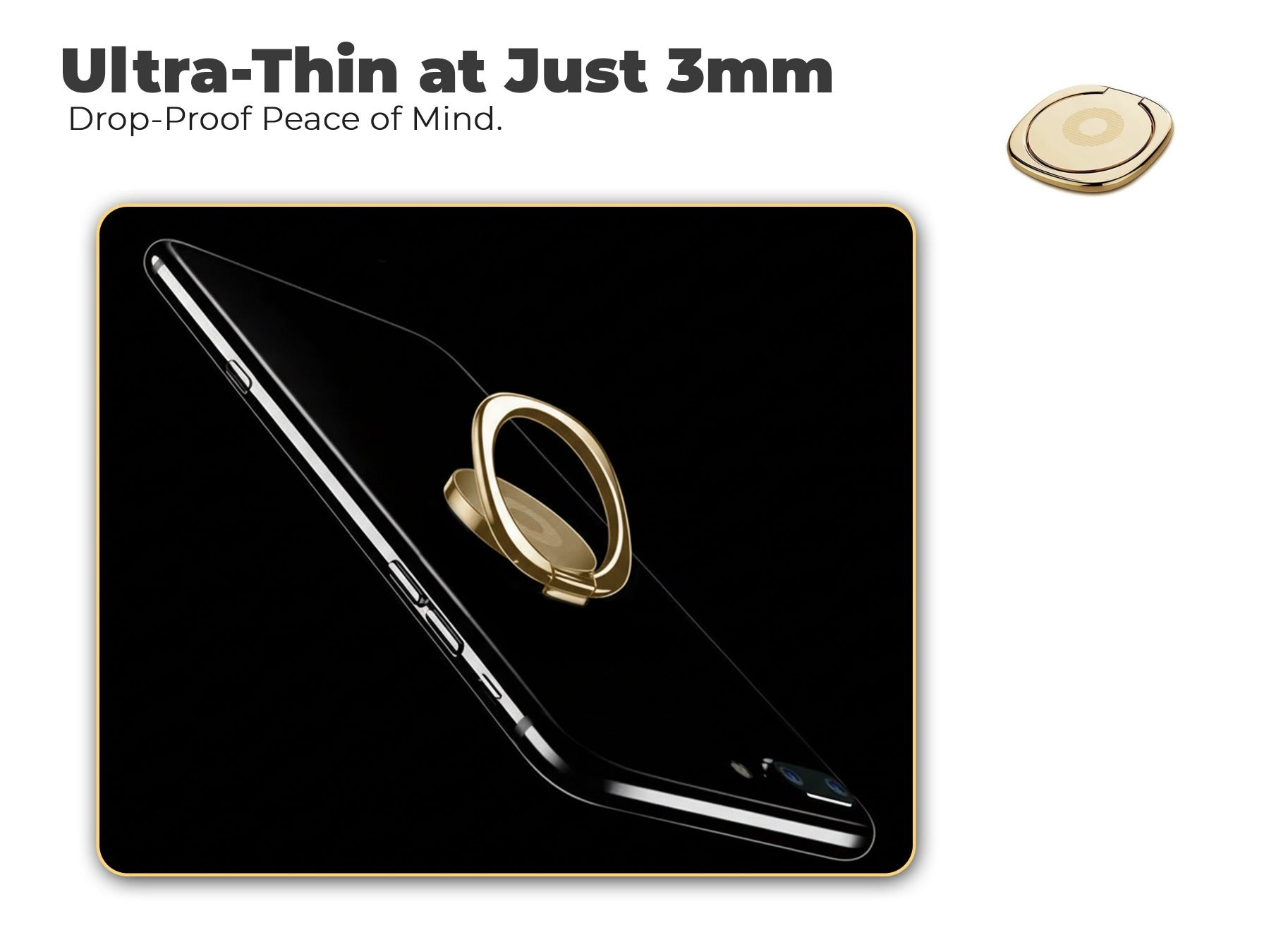 Phone Ring Holder & Finger Grip Stand Ultra-Thin 3mm 360° Rotating Anti-Drop Grip (Gold)