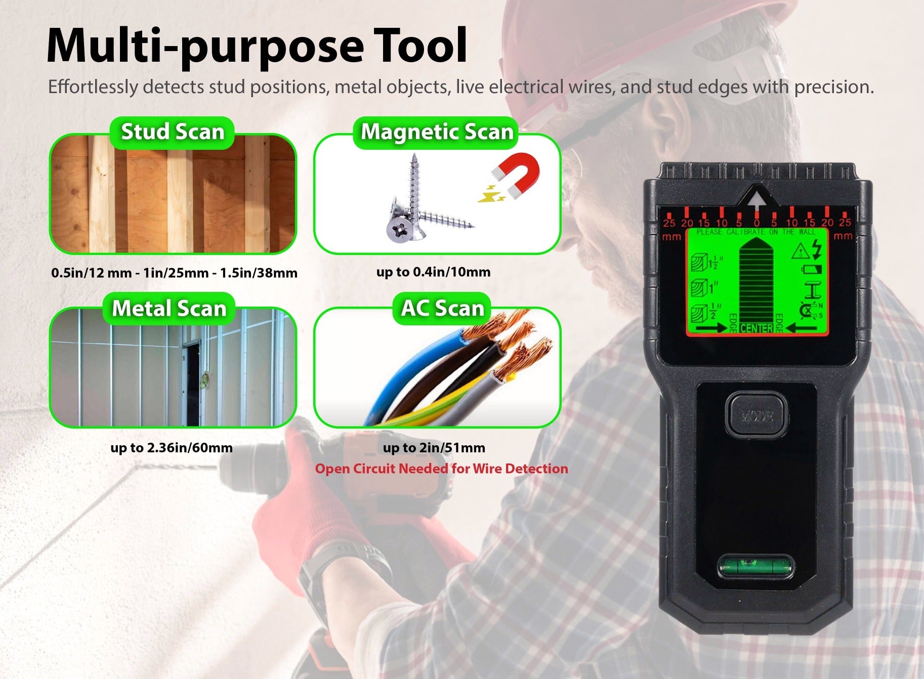 Stud Finder Wall Detector 5-in-1 Joist, Pipe, Wire & Metal Detection LCD Display