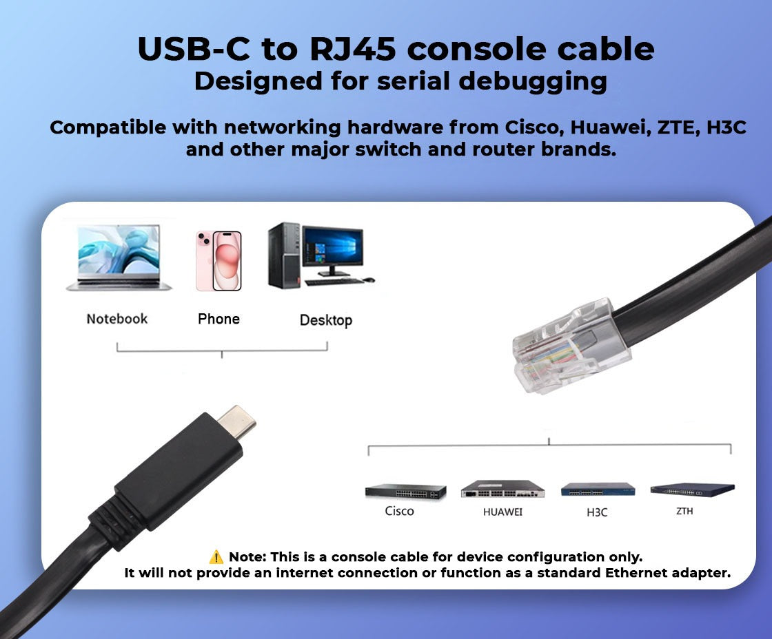 | Device Compatibility | Cisco, Huawei, H3C, ZTE & other networking devices with RJ45 console port |